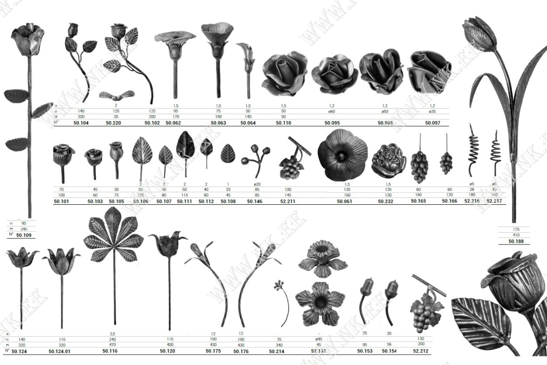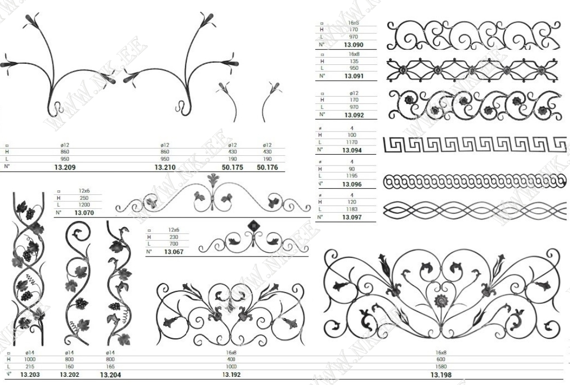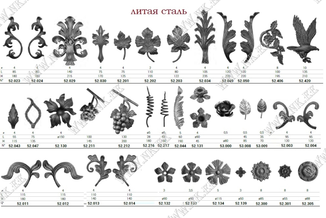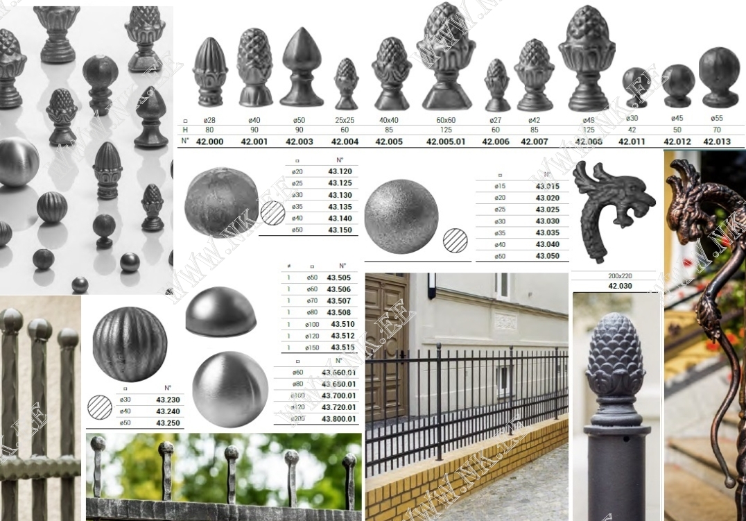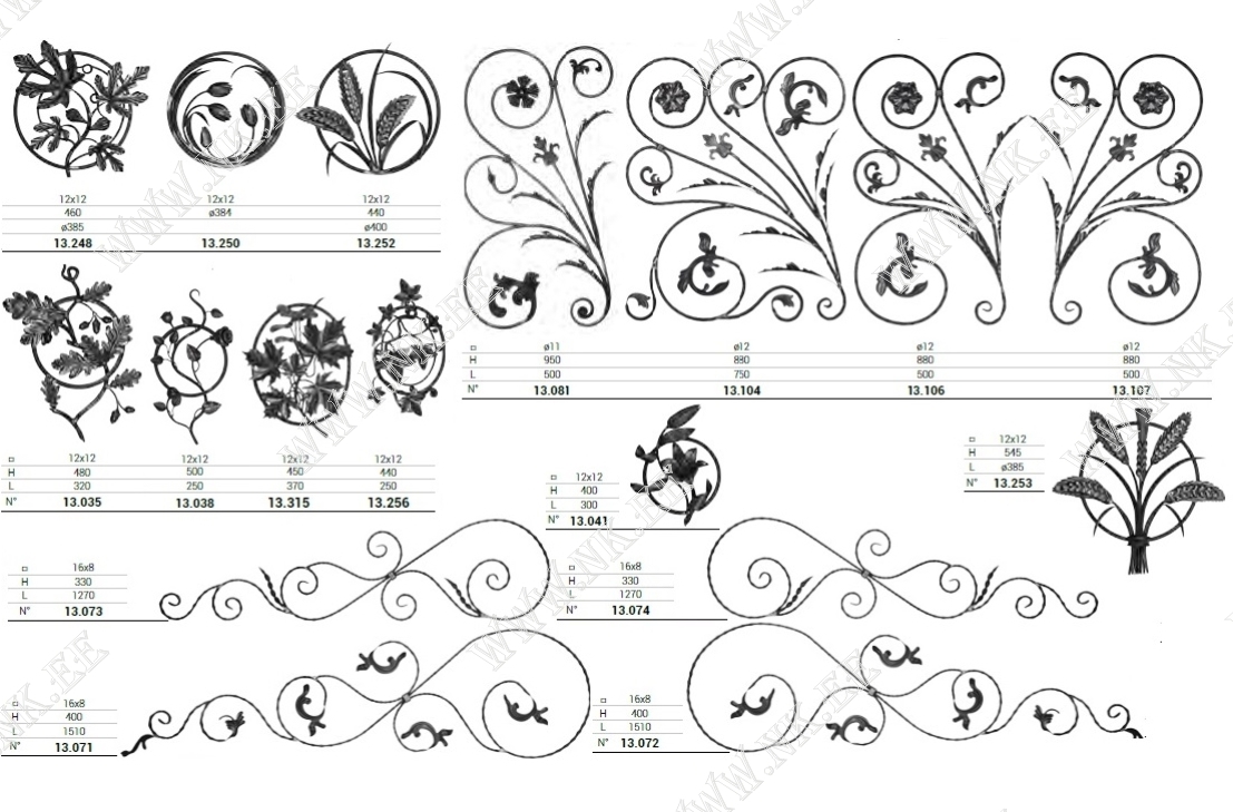 Здесь показан каталог готовых кованых элементов, из которых можно собрать разнообразные кованые изделия – от больших конструкций до интерьерных мелочей.