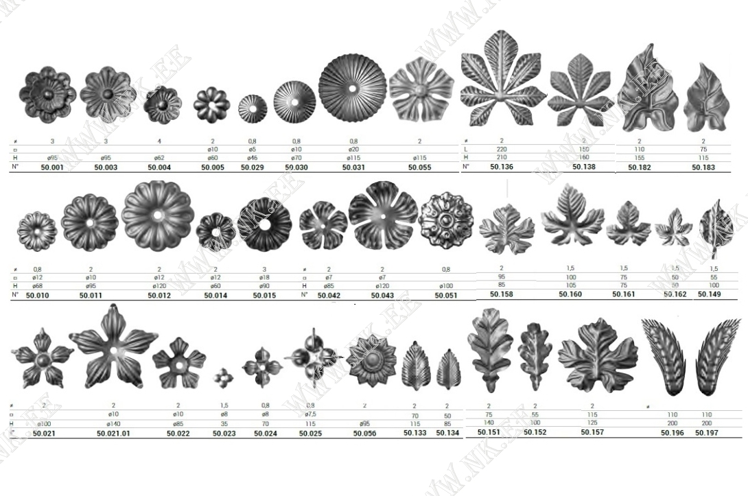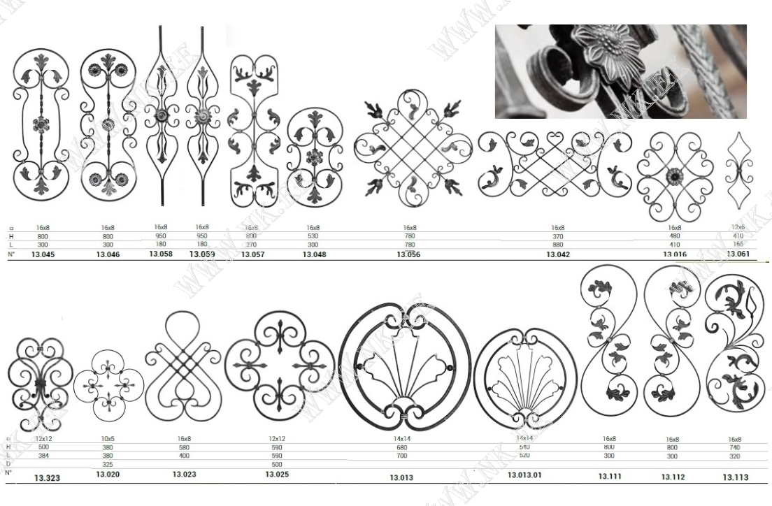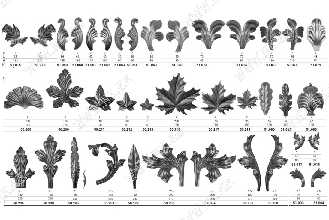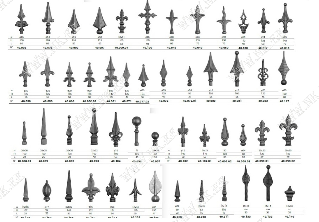 Здесь показан каталог готовых кованых элементов, из которых можно собрать разнообразные кованые изделия – от больших конструкций до интерьерных мелочей.
